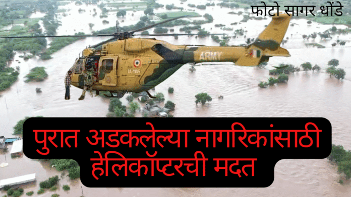 अतिवृष्टीमुळे अडकलेल्या नागरिकांच्या बचावासाठी आर्मीचे हेलिकॉप्टर