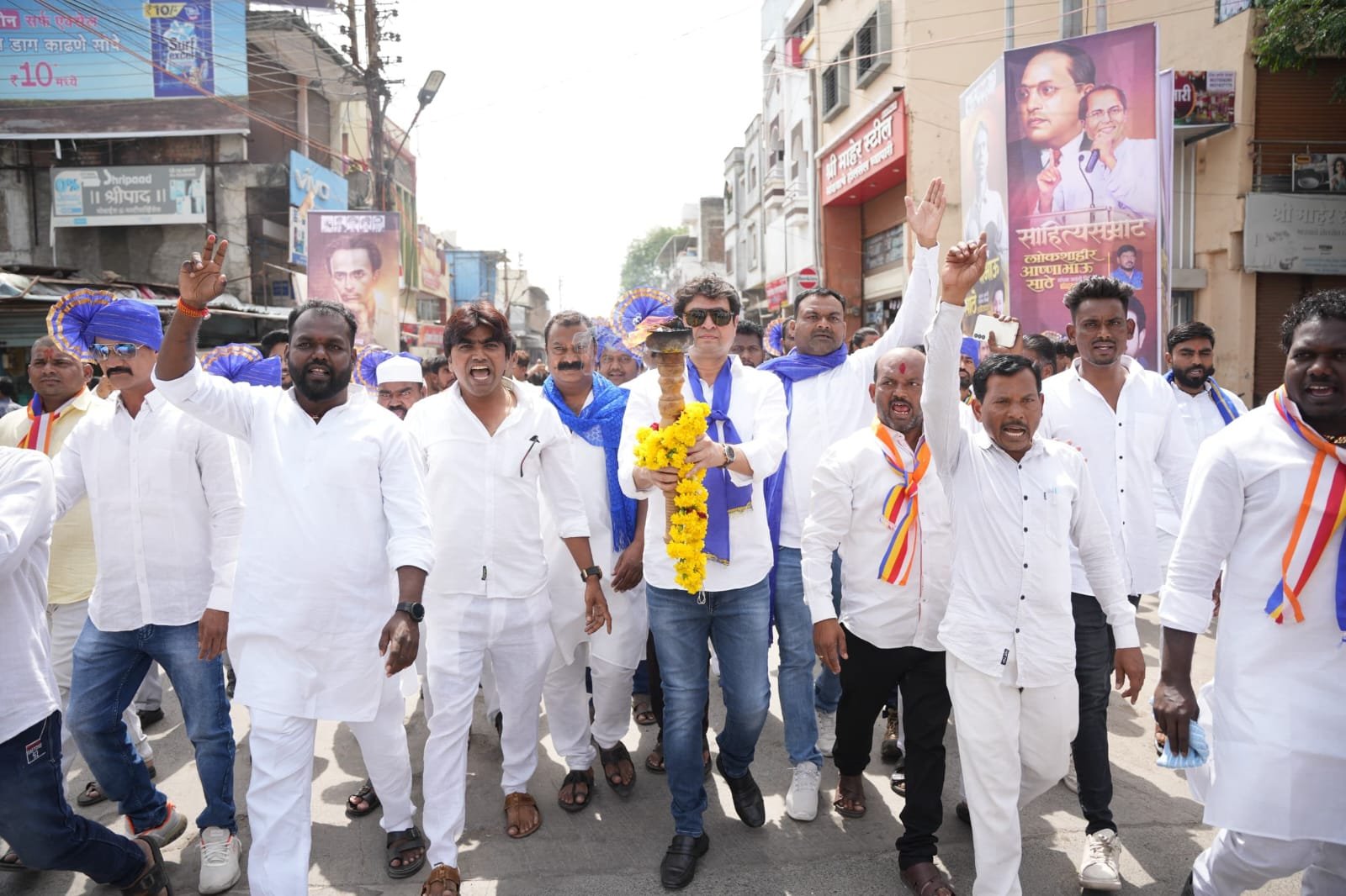 साहित्य सम्राट लोकशाहीर साहित्यरत्न आण्णाभाऊ साठे यांच्या 105 व्या जयंतीनिमित्त रिपाइंच्या वतीने युवा रिपाइं प्रदेशाध्यक्ष तथा अनु-जाती जमाती संघर्ष समितीचे अध्यक्ष पप्पू कागदे यांच्या नेतृत्वाखाली डॉ. बाबासाहेब आंबेडकरांच्या पुतळ्यापासून अभिवादन रॅली व क्रांती मशाल रॅली काढून लोकशाहीर आण्णाभाऊ साठे यांना अभिवादन करण्यात आले.