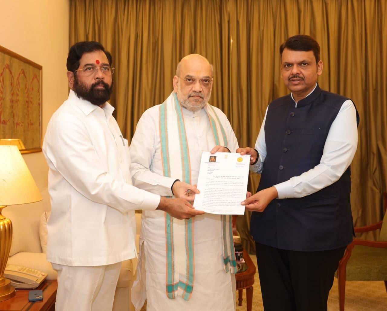 केंद्रीय गृहमंत्री अमित शाह यांना महाराष्ट्रात झालेली अतिवृष्टी आणि शेतकऱ्यांचे झालेले प्रचंड नुकसानीबाबत राष्ट्रीय आपत्ती निवारण निधी (NDRF)अंतर्गत आर्थिक मदतीसाठी मुख्यमंत्री देवेंद्र फडणवीस आणि उपमुख्यमंत्री एकनाथ शिंदे यांनी आज प्रत्यक्ष भेटून निवेदन दिले. महाराष्ट्रात झालेली अतिवृष्टी आणि त्यामुळे शेतकऱ्यांचे झालेले प्रचंड नुकसानीबाबत सविस्तर निवेदन आज केंद्रीय गृहमंत्री अमित शाह यांना दिले. राष्ट्रीय आपत्ती निवारण निधीमधून (NDRF) भरीव मदत महाराष्ट्रातील नैसर्गिक आपत्तीग्रस्त शेतकऱ्यांसाठी देण्यात यावी, अशी मागणी निवेदनातून करण्यात आली.